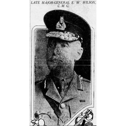Wilson was promoted colonel on 1 June 1914 with his appointment as acting commander of Military District No.4 (Montreal). When World War I broke out on 4 Aug. 1914, he joined the staff of the minister of militia and defence, Samuel Hughes, in Valcartier, and in October he accompanied him to England as his orderly officer. On 20 November he took command of Military District No.4. He was made a brigadier-general on 1 Sept. 1915. The following year he was given command of the camp at Valcartier, and in June he was promoted major-general. He resumed command of Military District No.4 in 1917. In the summer of 1918 he went to England and inspected Canadian troops on the front lines with Prime Minister Sir Robert Laird Borden* and the minister of the overseas military forces, Sir Albert Edward Kemp. He returned to Canada in August. When the war ended he asked to be relieved of his duties, but the military authorities persuaded him to remain at his post until the repatriation of the troops had been completed. He finally gave up command of Military District No.4 in October 1919. He died less than three years later, on 15 May 1922, at the age of 61. His two sons had both taken part in World War I. Erastus William had enlisted in the 2nd Canadian Mounted Rifles Brigade and served on its headquarters staff. Bradley Alexander had also joined the Canadian Expeditionary Force.