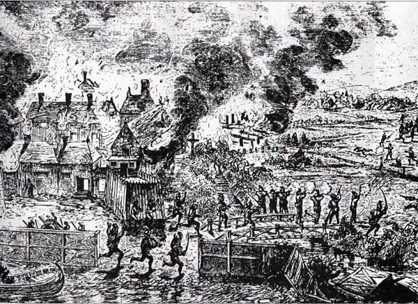 Le conseil de Virginie décréta que le capitaine Argall devrait immédiatement partir avec sa petite flotte, le Treasurer et les deux vaisseaux français qu’il avait capturés, emmenant avec lui plusieurs des prisonniers français y compris le père Biard, et qu’il devrait détruire tous les autres établissements au Nord jusqu’au 46e degré 1/2 selon Champlain (Œuvres (Biggar), IV : 20), jusqu’au 46e degré 1/2 selon Biard (JR (Thwaites), IV : 35). Débarquant d’abord à Saint-Sauveur, il détruisit les vestiges de la colonie de La Saussaye, abattit la croix érigée par les Jésuites et la remplaça par une autre portant le nom du roi d’Angleterre. Il se rendit alors à Sainte-Croix, où il détruisit les restes de la vieille colonie et s’empara d’un approvisionnement de sel entrepose par les pêcheurs français. Biard affirme qu’il refusa de guider Argall jusqu’à Sainte-Croix, mais que ce dernier réussit à s’y rendre quand même. Il gagna alors Port-Royal en traversant la baie. Biard rapporte qu’un Indien, le sachem local, fut capturé par les Anglais et leur servit de guide, mais Poutrincourt rejette la responsabilité sur le père Biard. Personne ne songe à l’explication évidente selon laquelle il dut exister assez de cartes et d’instructions écrites dans les bagages de Le Coq et sur le Jonas pour indiquer à Argall le chemin de Sainte-Croix et de Port-Royal. Quoi qu’il en soit, la surprise fut complète. Biencourt était parti avec des Indiens à la recherche de nourriture et n’avait laissé ni sentinelles ni garnison au fort. Argall pilla à son gré la colonie, tua quelques bestiaux et en emmena d’autres vivants, puis il rasa la colonie, sauf le moulin et quelques granges isolées. Il détruisit également les moissons dans les champs.