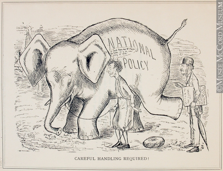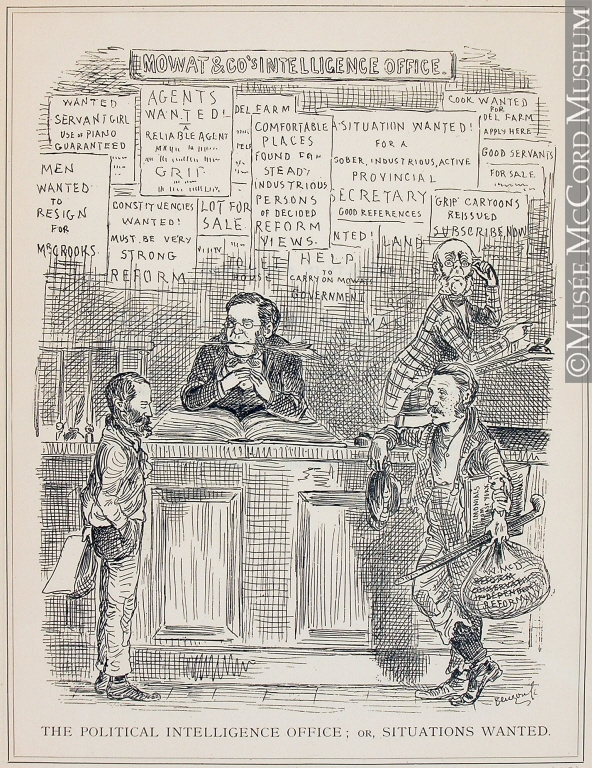Le 24 mai 1873, à l’âge de 22 ans, John Wilson Bengough lançait le premier numéro du Grip. Durant 20 ans, cet hebdomadaire torontois publierait des calembours, des blagues, des satires et surtout des dessins humoristiques sur à peu près tous les sujets dont on discutait au Canada à la fin du xixe siècle. Baptisé Grip comme le corbeau qui accompagne régulièrement le personnage central, simple d’esprit, de Barnaby Rudge, roman de Charles Dickens paru en 1841, ce petit magazine s’inspirait probablement du Punch de Londres, dont Bengough admirait beaucoup le caricaturiste, John Tenniel. Rédacteur en chef et éditeur du Grip, Bengough en était aussi le principal auteur. Sa présence s’y manifestait dans d’innombrables poèmes, dans des calembours choquants, dans des paragraphes satiriques de même que dans les « croassements et coups de bec » du corbeau. En général, son humour n’était pas des plus raffinés : « Pour cultiver le sentiment national au Canada, faites pousser de l’orge », « Menace fénienne : on craint une pénurie de whisky ». Toutefois, c’était surtout ses caricatures et dessins humoristiques qui retenaient l’attention dans le Grip. Certains occupaient une pleine page. Beaucoup révélaient l’influence de Thomas Nast, le grand caricaturiste républicain du Harper’s Weekly de New York. Ainsi, Bengough transforma l’éléphant républicain de Nast en symbole de la Politique nationale de sir John Alexander Macdonald*. D’autres, glissés çà et là comme pour remplir les blancs, étaient de savoureux commentaires sur la société ou sur des individus.