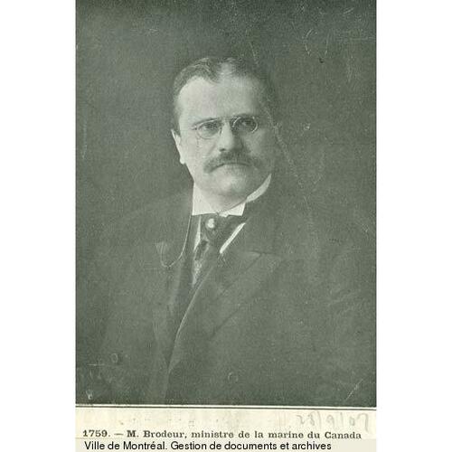 À la fin de 1902, après avoir forcé Joseph-Israël Tarte* à démissionner, Laurier entreprend une grande réorganisation de son parti et en profite pour récompenser ses partisans les plus fidèles. Ainsi, le 19 janvier 1904, Brodeur devient ministre du Revenu de l’intérieur. Il occupe ce poste pendant bien peu de temps puisque, le 6 février 1906, après le décès subit de Raymond Préfontaine*, il est nommé ministre de la Marine et des Pêcheries et responsable du district politique de Montréal.