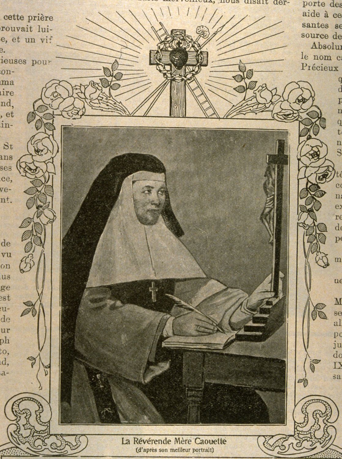 Marguerite Jean, « CAOUETTE, AURÉLIE, dite Catherine-Aurélie du Précieux-Sang », dans Dictionnaire biographique du Canada, vol. 13, Université Laval/University of Toronto, 2003– , consulté le 15 déc. 2025, https://www.biographi.ca/fr/bio/caouette_aurelie_13F.html.
