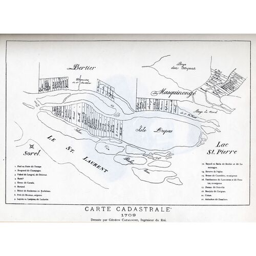 AJM, Greffe de Joseph-Charles Raimbault, 19 juin 1726, 25 et 31 août 1728, 15 févr. et 26 juin 1730, 9 août 1731, 13 mars 1732 ; Greffe de Jean-Baptiste Pottier, 2 févr. et 9 août 1690, 31 oct. 1700 ; Greffe de Claude Maugue, 24 oct. 1692 ; Greffe de Jacques David, 28 juill. et 22 sept. 1721.— AJQ, Greffe de François Genaple, 3 juin 1696.— AN, Col., B, 29, ff.124v., 334v., 335s., 400s. ; 33, f.162 ; 34, ff.344, 461v.–463v. ; 35, f.306v. ; 40, ff.490s. ; 41, ff.533v., 534s., 45, f.293v. ; 48, f.973 ; 49, f.722v. ; 52, f.593v. ; 58, f.483 ; Col., C11A, 20, f.74 ; 24, f.163 ; 28, ff.250s. ; 33, ff.15s., 209s. ; 34, ff.113–114v., 328v. ; 120, f.180 ; Col., C11B, 5, f.13 ; 7, f.12 ; Col., C11C, 16, ff.13s. ; Col., C11E, 13, ff.156s. ; Col., D2C, 47 ; 57, ff.29, 54 ; 60, f.3v. ; Col., C11G, 3, ff.159s., 183 ; 4, ff.97s. ; Col., E, 65, pièces 2, 3, 5, 11 ; Col., F3, 2, ff.358s. ; 6, ff.392s. ; Section Outre-Mer, G1, 406.— APC, Map. Div., H2–312 [1708] (BM, King’s Map CXIX, 22) ; H3–340 ; H12–1112 (1723) ; V2/300 (1709), Sheets I-V (BN, Cartes et Plans, Portefeuille 127, Div. 2, pièces I-V).— M. de Catalogne et le canal de la rivière Saint-Pierre, BRH, XIII (1907) : 88–90.— Documents Relating to the Seigniorial Tenure in Canada, 1598–1854, William B. Munro, édit. (« Champlain Society Publications », III, 1909) : 94–151.— P.-G. Roy, Inv. coll. pièces jud. et not., I : 66 ; II : 310.— Trudel, Atlas de la Nouvelle-France/An Atlas of New France (Québec, 1968).— Harris, The Seigneurial System.— Robert Le Blant, Histoire de la N.-F., 87–272.— Ægidius Fauteux, Gédéon de Catalogne, La Patrie (Montréal), 9 juin 1934 : 40–42.— E. Manceau, Étude sur l’origine des canaux, RC, LXVI (1908) : 432s.— M.-M. Azard-Malaurie, Commentaires et réflexions sur quelques documents de l’exposition « L’Amitié franco-canadienne » organisée à Montréal et à Québec en 1967, RHAF, XXI (1967–68) : 770–772.