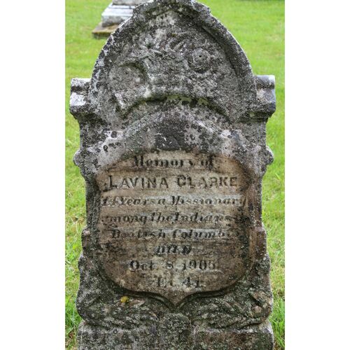AN, RG 31, C1, 1881, Queens County (copie au P.E.I. Museum).— P.E.I. Museum, Geneal. Div., Marriage book no 8 (1862–1867) : 63 ; Pownal United Methodist Cemetery transcript.— Jean Barman, The west beyond the west : a history of British Columbia (Toronto, 1991), 154s., 161.— J. W. Grant, Moon of wintertime : missionaries and the Indians of Canada in encounter since 1534 (Toronto, 1984), 175.— Isobel McFadden, Living by bells : a narrative of five schools in British Columbia, 1874–1970 ([Toronto ?], 1971 ; exemplaire aux EUC-C), 3.— Missionary Outlook (Toronto), 14 (1896)–21 (1902), particulièrement 17 (1899) : 190, 263 ; 18 (1900) : 166.— Wendy Mitchinson, « Canadian women and church missionary societies in the nineteenth century : a step towards independence », Atlantis (Wolfville, N.-É.), 2 (1977), no 2 : 61.— Mme W. E. [Elizabeth] Ross, « In affectionate remembrance of Miss Lavinia Clarke », Missionary Outlook, 24 (1905) : 284s.