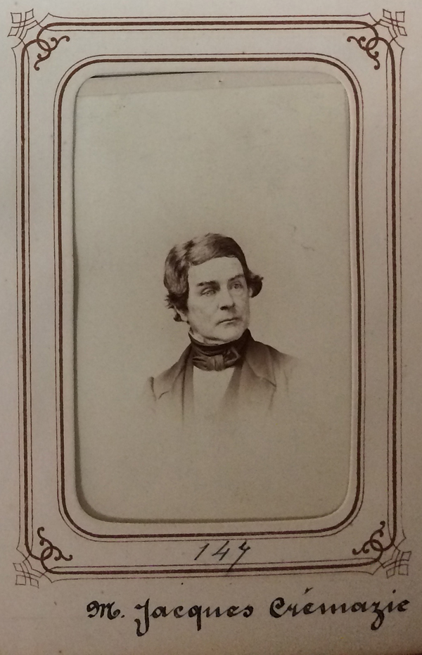 CRÉMAZIE, JACQUES, avocat, auteur d’ouvrages de droit, journaliste, né à Québec le 10 octobre 1810, du mariage de Jacques Crémazie et de Marie-Anne Miville ; frère aîné du poète Octave Crémazie qu’il aida considérablement dans ses malheurs financiers et dans l’exil ; décédé à Québec le 11 juillet 1872.