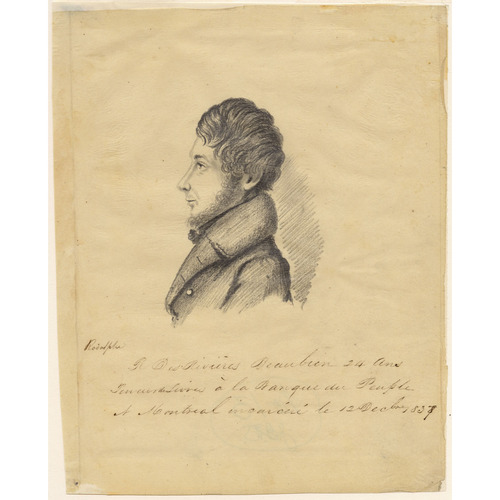 DES RIVIÈRES, RODOLPHE (baptisé Michel-Rodolphe Trottier Des Rivières Beaubien ; il se fit appeler Rodolphe Des Rivières Beaubien ou Rodolphe Des Rivières et il signait R. Des Rivières ou R. DesRivières), patriote et marchand, né le 5 mai 1812 et baptisé quatre jours plus tard à Lac-des-Deux-Montagnes (Oka, Québec), fils de Pierre-Charles-Robert Trottier Des Rivières Beaubien et d’Henriette Pillet ; décédé vraisemblablement célibataire le 17 mars 1847 et inhumé trois jours plus tard à Montréal.