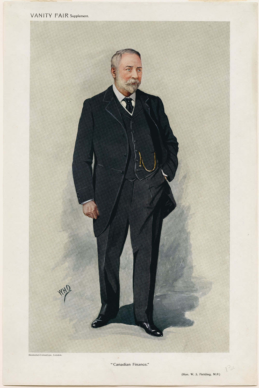 À titre de membre fondateur et de vice-président de la Maritime Provinces Liberal Association, Fielding appuya Laurier sans réserve pendant la campagne électorale de 1896 – quoique, par précaution, il ait refusé de se porter lui-même candidat avant que la victoire libérale, en juin, l’ait assuré d’un poste au cabinet. Pressé par Laurier d’accepter le portefeuille des Finances, il fut élu sans opposition en août dans la circonscription néo-écossaise de Shelburne et Queens. Il prit ensuite sa place dans le premier cabinet de Laurier, cette équipe talentueuse où l’on trouvait, entre autres chefs régionaux chevronnés, sir Oliver Mowat*, Andrew George Blair* et Louis Henry Davies. Bien des observateurs s’étonnèrent que Laurier confie les Finances à Fielding. Et ce choix irrita sir Richard John Cartwright*, longtemps critique du parti en matière financière et ex-ministre des Finances. Les adeptes du libre-échange s’inquiétaient : certains d’entre eux trouvaient, comme John Charlton*, que Fielding n’avait « pas la stature nécessaire pour [occuper un tel] poste ». Il est fort possible que, pour empêcher la nomination du vieux libre-échangiste doctrinaire Cartwright, des hommes d’affaires tel George Hope Bertram* aient pressé Laurier de nommer Fielding, mais, si tel fut le cas, ils n’eurent pas à insister beaucoup. Le premier ministre semblait tout disposé à choisir un candidat plus jeune, au passé politique moins lourd, un homme qui avait prouvé son amitié pour les milieux d’affaires – quelqu’un qui, pour reprendre les termes du journaliste Paul Ernest Bilkey, était « libre-échangiste en paroles et protectionniste dans la pratique », à peu près comme Laurier lui-même.