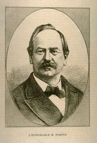 En 1867, John Le Boutillier*, député du comté de Gaspé à l’Assemblée législative, fut nommé conseiller législatif ; les conservateurs demandèrent alors à Fortin d’être candidat à la chambre des Communes et à l’Assemblée législative du Québec ; il remporta les deux élections. Nommé commissaire des Terres de la couronne par le gouvernement provincial de Gédéon Ouimet* en février 1873, il démissionna du Conseil exécutif en septembre 1874, avec les autres ministres, à la suite du scandale des Tanneries [V. Louis Archambeault]. Responsable des terres de la couronne, Fortin avait pris l’initiative d’établir des programmes de conservation et de protection contre les incendies pour préserver les forêts de la province. Réélu en 1875, il fut nommé orateur (président) de l’Assemblée. Il créa en 1876 la section marine de la bibliothèque de l’Assemblée législative, qui fut détruite par un incendie le 18 avril 1883. Il dut résigner ses fonctions d’orateur le 10 novembre 1876, quand Edmund James Flynn*, qui avait été son adversaire libéral aux élections, affirma que l’intervention du clergé avait contribué à sa victoire. Une enquête le disculpa, mais il avait déjà été remplacé par Louis Beaubien*.