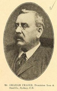 L’arrière-arrière-grand-père de Graham Fraser était un pionnier du comté de Pictou, en Nouvelle-Écosse, région qui allait devenir « foncièrement écossaise et presbytérienne ». Son père était bien connu en tant que contremaître de la construction au chantier naval de James Carmichael*. Comme lui, Fraser quitta tôt l’école. À l’âge de 16 ans, il alla travailler à l’atelier de la Rhode Island Locomotive Works à Providence. Par la suite, il se perfectionna, à Boston, dans la galvanisation et le traitement du fer. En 1867, il retourna à New Glasgow occuper un emploi de ferronnier de navires au chantier de Carmichael. Peu après, il se mit à engager ses propres ouvriers et à remplir des contrats de ferrage de navires. En 1872, il s’associa à un forgeron de la région, George Forrest McKay, pour fonder la Hope Iron Works. Comme la construction de navires en bois déclinait, Fraser et McKay ne faisaient pas seulement du ferrage de navires ; ils fabriquaient des essieux de wagon et des crampons de rail pour le nouveau réseau ferroviaire de l’arrière-pays.