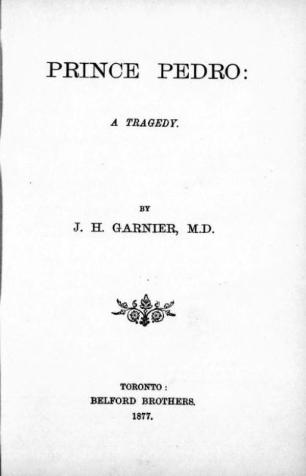 Les écrits de Garnier comprennent aussi une pièce de théâtre, Prince Pedro : a tragedy (Toronto, 1877). Les titres de deux autres pièces, Dandolo ; a tragedy in five acts et Moron, the Jew of Syracuse, sont consignés comme ayant fait l’objet d’une demande de copyright aux États-Unis en 1793, mais elles n’auraient pas été publiées.