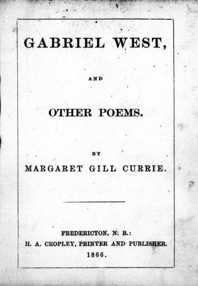 Magaret Gill devait écrire occasionnellement pour des périodiques comme le Saint John Globe ou le Stewart’s Literary Quarterly Magazine, de Saint-Jean, mais elle attira d’abord l’attention sur ses textes poétiques avec la publication en 1866, à Fredericton, de Gabriel West, and other poems. Dédiés « aux descendants des loyalistes de toute la province du Nouveau-Brunswick », ces poèmes étaient écrits « pour préserver le souvenir des Loyalistes de l’oubli ». La plupart avaient été composés quand Margaret était encore adolescente et, outre le caractère actuel de ceux qui ont trait à Fredericton ou au trésor de pirate qui se trouve dans la province, ils présentent un intérêt mineur. Dans Gabriel West, toutefois, récit « appuyé sur des faits », elle devait créer de puissants rythmes narratifs pour raconter la tragédie d’un soldat loyaliste, ami de son grand-père, qui avait perdu sa femme et son enfant dans un naufrage survenu tandis qu’ils se dirigeaient vers le Nouveau-Brunswick. L’attachement profond de Margaret Gill Currie à sa province se trouve à la fois dans ce poème (« Mon cœur se réjouit dans le droit de louer / Ce pays comme mien, en des vers simples et familiers ») et dans le récit en vers subséquent, plus ambitieux, intitulé John Saint John and Anna Grey : a romance of old New Brunswick.