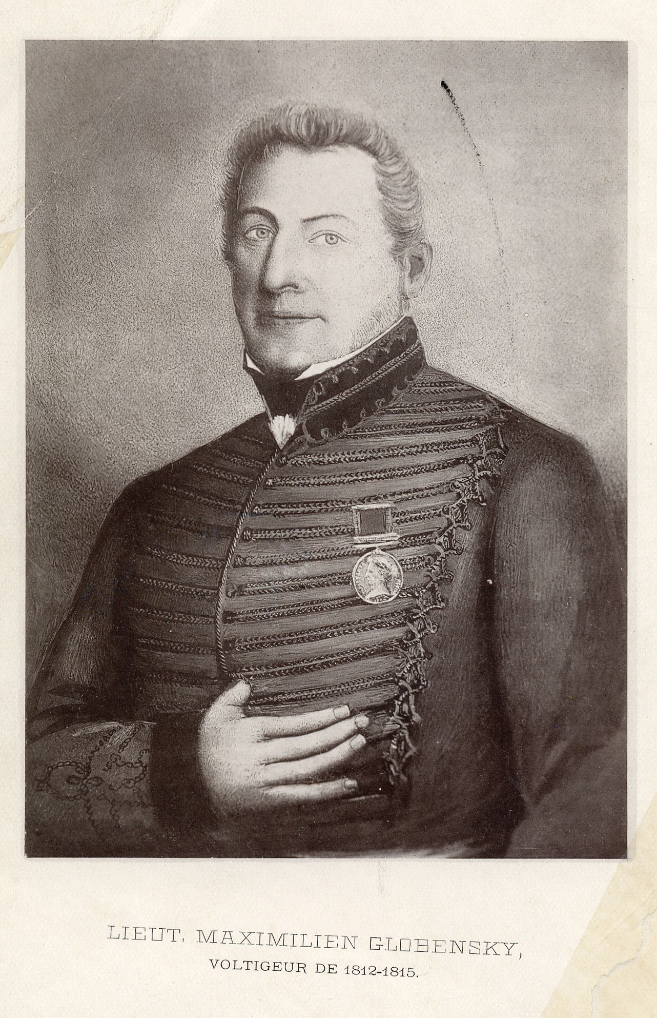 GLOBENSKY, MAXIMILIEN, militaire, né à Verchères, Bas-Canada, le 15 avril 1793, fils du docteur Auguste-France Globensky, d’origine polonaise, et de Marie-Françoise Brousseau, dit Lafleur de Verchères ; il épousa en premières noces Élisabeth Lemaire Saint-Germain dont il eut quatre filles et un garçon, et, en secondes noces, le 3 mars 1851 à Sainte-Mélanie, Marie-Anne Panet ; décédé à Saint-Eustache, Bas-Canada, le 16 juin 1866.