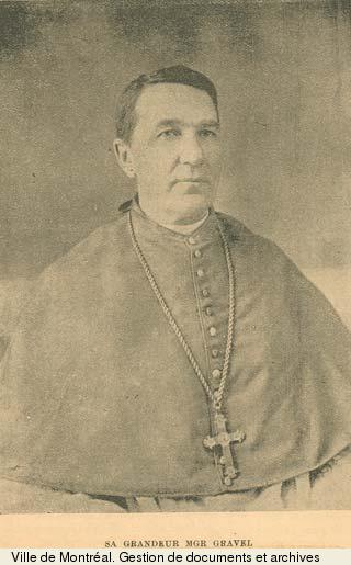 C’est par un cheminement peu orthodoxe, marqué de revirements, qu’Elphège Gravel en vient à choisir la carrière ecclésiastique. En 1849, il entreprend des études classiques au séminaire de Saint-Hyacinthe, dans le Bas-Canada, les poursuit au Holy Cross College, dirigé par les jésuites, à Worcester au Massachusetts, et les termine au petit séminaire de Montréal. À partir de 1859, il réside au grand séminaire de Montréal, où il étudie pendant 30 mois la théologie ; puis il s’installe pour une durée de cinq mois à l’évêché, recevant la tonsure dans l’intervalle. À l’automne de 1862, Gravel est au collège Sainte-Marie-de-Monnoir, à Marieville, où il enseigne pendant deux ans. Il abandonne ensuite l’état ecclésiastique et se rend à Québec, où il fréquente, à l’été de 1864, l’école militaire, puis s’inscrit à l’automne à des cours de droit à l’université Laval. Selon l’abbé Isidore Desnoyers, « cette année de revers et d’épreuves raffermit le jeune étudiant dans sa première vocation », si bien qu’au mois d’août 1865, après avoir à nouveau revêtu l’habit ecclésiastique, il est de retour au collège Sainte-Marie-de-Monnoir. À ce moment-là, Gravel relève toujours du diocèse de Montréal et il désire son incardination à celui de Saint-Hyacinthe, dont l’évêque, Mgr Charles La Rocque*, se dit prêt à le recevoir, mais à la condition qu’il serve le séminaire de Saint-Hyacinthe. C’est là qu’il reçoit les trois ordres mineurs le 28 avril 1869. Une année plus tard, le 2 avril, il devient sous-diacre puis, les 4 et 11 septembre, diacre et prêtre. Gravel, qui a alors 31 ans, fait part à son évêque de son désir d’obtenir une autre affectation. Mgr La Rocque, qui estime que le séminaire a besoin de son enseignement, refuse de lui donner satisfaction. Toutefois, en 1871, il juge bon de le nommer vicaire à Sorel. Deux ans plus tard, Gravel reçoit une charge semblable à Saint-Hyacinthe avant d’être pourvu, en 1874, de la cure de Saint-Damien à Bedford, dans le canton de Stanbridge, à la limite sud du diocèse et à la frontière américaine.