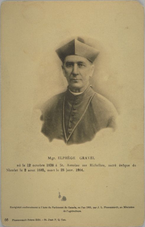GRAVEL, ELPHÈGE (baptisé Alphée), professeur, prêtre catholique et évêque, né le 12 octobre 1838 à Saint-Antoine-sur-Richelieu, Bas-Canada, cinquième des douze enfants du second mariage de Nicolas Gravel, cultivateur, avec Julie Boiteau ; décédé le 28 janvier 1904 à Nicolet, Québec.