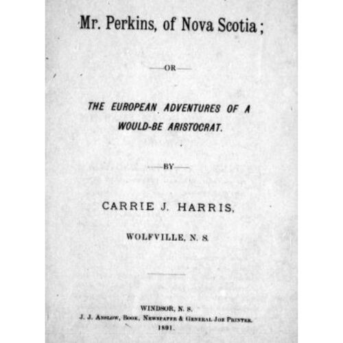 Même si elle n’est pas aussi connue que ses contemporaines, les romancières canadiennes Alice Jones* ou Sara Jeannette Duncan*, Carrie Jenkins Harris leur ressemble par l’origine locale de ses personnages implantés dans un décor international. Dans Mr. Perkins, elle fait ressortir l’aspect comique des prétentions de la famille Perkins à l’ascension sociale et oppose le personnage du jeune Tom Perkins à l’indifférence égoïste de l’aristocratie britannique et au maquignonnage d’escrocs de Londres et de Paris quand il entreprend le tour de l’Europe destiné à parfaire son éducation. Comme dans les cinq romans de Mlle Harris, le dénouement de l’intrigue de Mr. Perlons repose trop sur des coïncidences, mais le roman renferme néanmoins des commentaires mordants sur la prétention et met en scène des personnages originaux qui donnent de la vie au texte. L’Acadian de Wolfville le trouva « extrêmement bien écrit » et jugea qu’il faisait « le plus grand honneur au talent de l’auteure ». Toutefois, le journal fut moins enthousiaste pour Mr. Perkins dans sa critique de A romantic romance, publié en 1893, et déclara que le raffinement « de l’invention » et l’envergure de ce roman manquaient au premier. Avec Grand-Pré comme point de départ, à l’instar de A modern Evangeline qui parut en 1896, A romantic romance s’articule autour d’une fausse lettre et d’un malentendu entre deux amoureux qui serviront d’éléments catalyseurs à une idylle contrariée. Tels les héros de A modern Evangeline, des Néo-Écossais s’aventurent dans les grandes villes de New York et de Boston afin de poursuivre leurs études et leur carrière, et comme dans tous ses romans populaires, l’auteure ajoute sa touche moralisatrice : « Sois prudente, ma chère Eva. Si les vieilles braises se rallument rapidement, prends garde, dans ton cas, qu’elles ne s’enflamment subitement et n’enveloppent le bonheur de ta vie dans une redoutable conflagration. Pendant que tu prépares les pierres de la vengeance à jeter à ton amant d’autrefois, assure-toi d’être assez forte pour les lancer d’une main ferme, sinon elles peuvent rebondir et détruire ton propre cœur aimant. »