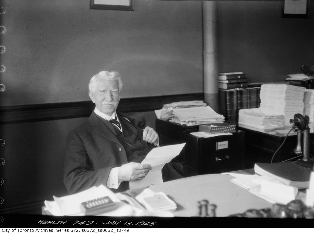 City of Toronto Arch., Fonds 200, ser. 365 (rapports mensuels du Medical Officer of Health, du Dept. of Public Health et du Local Board of Health, 1910–1929).— A. F. Denton, « Toronto leads the world in public health service […] », Toronto Star Weekly, 27 sept. 1924 : 18.— Evening Telegram (Toronto), 1919.— Globe, 1910–1931.— Toronto Daily Star, 1910–1931.— World (Toronto), 1918–1919.— P. A. Bator, « The health reformers versus the common Canadian : the controversy over compulsory vaccination against smallpox in Toronto and Ontario, 1900–1920 », Ontario History (Toronto), 75 (1983) : 348–373 ; « “Saving lives on the wholesale plan” : public health reform in the city of Toronto, 1900 to 1930 » (thèse de ph.d., Univ. of Toronto, 1979).— P. A. Bator et A. J. Rhodes, Within reach of everyone : a history of the University of Toronto School of Hygiene and the Connaught Laboratories (2 vol., Ottawa, 1990–1995), 1.— Bureau of Municipal Research, Administrative study of the Toronto department of public health as of March 31st, 1915 ([Toronto, 1915]).— Canadian men and women of the time (Morgan ; 1912).— J. M. S. Careless, Toronto to 1918 : an illustrated history (Toronto, 1984).— Health Bull. (Toronto), 1911–1915, 1920–1929.— Heather MacDougall, Activists and advocates : Toronto’s health department, 1883–1983 (Toronto, 1990) ; « Toronto’s health department in action : influenza in 1918 and SARS in 2003 », Journal of the Hist. of Medicine and Allied Sciences (Oxford, Angleterre), 62 (2007) : 56–89.— Angus McLaren, Our own master race : eugenics in Canada, 1885–1945 (Toronto, 1990).— Kevin Plummer, « Historicist : guarding a city’s health » : torontoist.com/2008/08/historicist_guarding_a_citys_health (consulté le 29 juin 2016).— Marion Royce, Eunice Dyke : health care pioneer […] (Toronto, 1983).— Toronto City Council, Minutes of proc. (Toronto), 1910–1929 (exemplaires aux City of Toronto Arch., Research Hall library).— K. M. Yorke, « Saving lives on wholesale plan : how Toronto has been made the healthiest of large cities », Maclean’s, juillet 1915 : 20–22, 93–96.