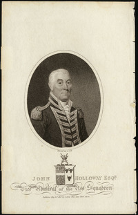 Fils d’une vieille famille respectable, John Holloway entra dans la marine royale en 1760 et servit sur l’Antelope. L’année suivante, il effectua son premier voyage à Terre-Neuve en même temps que le nouveau gouverneur, le capitaine Thomas Graves*. Il devint lieutenant de vaisseau le 19 janvier 1771 et post captain en janvier 1780. Il servit avec distinction durant la Révolution américaine et les longs conflits qui opposèrent la France et l’Espagne. L’amiral Horatio Nelson, qui était un de ses amis, le décrivit comme « un homme bon et honnête ». Holloway fut promu contre-amiral le 14 février 1799, puis vice-amiral le 25 octobre 1804. Il fut nommé gouverneur de Terre-Neuve en 1807.