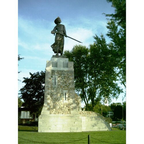 La Potherie : « mais elle conserva dans le moment plus d’assurance que n’en pouvait avoir une Fille de quatorze ans, elle lui laissa entre les mains son mouchoir de col se jettant dans son Fort, dont elle ferma la porte sur elle en criant aux armes, & sans s’arrêter aux gémissements de plusieurs femmes désolées de voir enlever leurs maris, elle monta sur un Bastion où était la Sentinelle ».