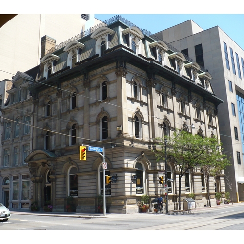 Parmi les ouvrages commerciaux de Gundry et Langley, il en est un qui mérite une mention : l’entrepôt de marchandises sèches de John Macdonald*, construit à Toronto en 1862–1863. Remarquable par son « imposante organisation et [ses] proportions gigantesques », cet immeuble en pierres de cinq étages, de style gothique italien, écrasait ses voisins de la rue Wellington. Quand la commande en avait été passée, on avait crié à l’extravagance, mais bientôt, il suscita l’envie. Nombre d’hommes d’affaires se firent construire des entrepôts ou des édifices à bureaux immenses et ostentatoires, dont beaucoup par le cabinet de Langley.