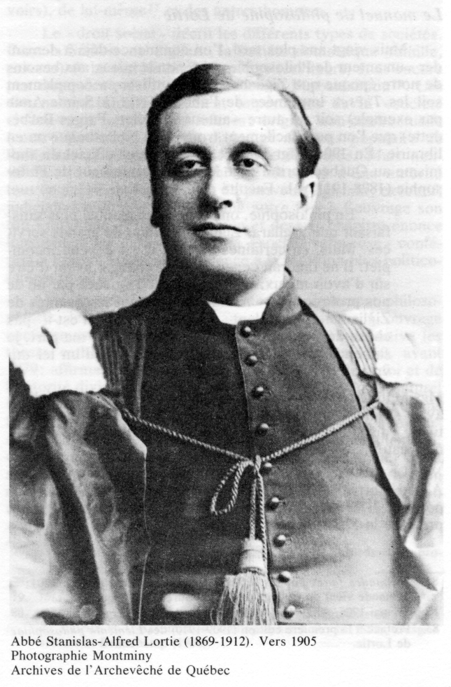 LORTIE, STANISLAS-ALFRED, prêtre catholique, professeur et auteur, né le 12 novembre 1869 à Québec, fils d’Henri Lortie, marchand, et de Marie-Ursule Drolet ; décédé le 19 août 1912 à Curran, Ontario, et inhumé le 22 à Québec.