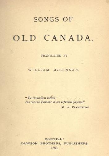 La première publication importante de McLennan parut à Montréal en 1886. Il s’agissait de Songs of old Canada, recueil de 14 chansons folkloriques du Canada français avec, en regard, la version anglaise qu’il en avait faite. La préface du recueil révèle que c’est la crainte de voir bon nombre de ces chansons tomber dans l’oubli qui l’avait incité à les publier. Ses commentaires ainsi que le soin avec lequel il a indiqué ses sources reflètent son penchant d’érudit pour les choses du passé. Songs of old Canada, qui était le deuxième livre à présenter des chansons folkloriques canadiennes-françaises à un auditoire anglophone (le premier étant National ballads of Canada de George Thomas Lanigan, paru à Montréal en 1865), soutient la comparaison avec n’importe lequel des recueils du même genre publiés au xxe siècle et ce, tant à cause du talent poétique dont il témoigne que du choix judicieux des morceaux « qui, a-t-il semblé au traducteur, offraient la meilleure possibilité d’un traitement réussi dans une autre langue ». C’est avec raison qu’un critique contemporain déclara, dans le Montreal Daily Star, que McLennan avait « la précision d’un érudit et la belle sensibilité d’un poète ».