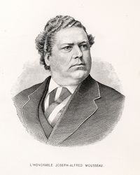 MOUSSEAU, JOSEPH-ALFRED, avocat, journaliste, écrivain, homme politique et juge, né à Berthier-en-Haut (Berthierville, Québec) le 18 juillet 1838, fils de Louis Mousseau et de Sophie Duteau, dit Grandpré ; le 20 août 1862, il épousa à Berthier-en-Haut Hersélie Desrosiers, et ils eurent 11 enfants ; décédé à Montréal le 30 mars 1886.