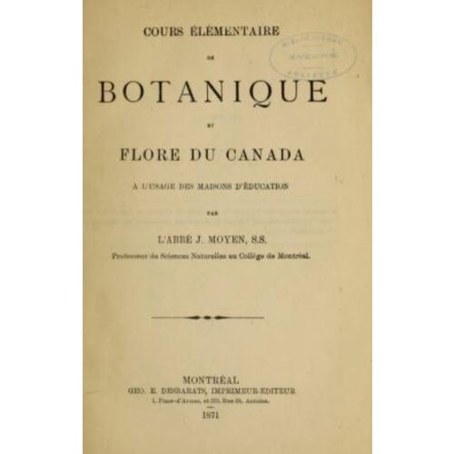 En 1871, Moyen publie Cours élémentaire de botanique et Flore du Canada [...], qui forme un manuel destiné aux botanistes amateurs, aux étudiants en médecine, ainsi qu’à l’enseignement dans les collèges classiques. Le livre comprend trois parties : d’abord un bref exposé des principes généraux de la botanique et de la taxinomie ; suit une description de la flore de l’est du Canada, où figurent, selon l’auteur, « toutes les plantes qui croissent spontanément en ce pays » (des clefs analytiques des familles, des genres et parfois même des espèces accompagnent les descriptions sommaires ; l’ouvrage signale en outre les espèces que l’auteur a lui-même récoltées dans la région de Montréal) ; enfin, un appendice qui présente, à l’aide de tableaux, les principales plantes cultivées.