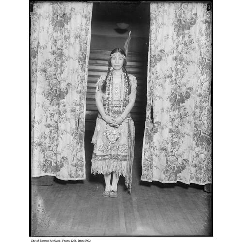En juin 1907, Mlle Riley accepta un poste à l’Alexandra Orphanage de Vancouver. Frances y fit son entrée à l’école publique, où elle fut la cible de préjugés raciaux pour la première fois de sa vie. Le révérend Egerton Ryerson Young, son biographe, écrirait : « Bravement elle disait : « Je suis Indienne ; je suis Crie jusqu’à la moelle et j’en suis fière ! » Mais son esprit sensible était constamment harcelé par des [êtres] méprisants, ignorants et brutaux. » Mlle Riley quitta l’orphelinat en 1910 et s’établit avec Frances à Port Kells. Ni l’une ni l’autre n’était en bonne santé ; Frances subit plusieurs opérations à la jambe pour traiter une blessure survenue à Norway House. Elle devint une soliste et une lectrice prisées aux rassemblements religieux. À 15 ans, elle s’installa avec Mlle Riley à South Vancouver. À cet endroit, elle participa à des concours de diction organisés par l’Union chrétienne de tempérance des femmes et gagna des médailles en 1914 et en 1916. Elle suivit des cours d’élocution auprès du directeur de théâtre et spécialiste de diction Harold Nelson Shaw. Pour payer son dû, elle faisait de la couture, des travaux de secrétariat et promenait des chiens. Shaw reconnut ses talents et l’appuya avec enthousiasme. Il avait certainement à l’esprit la remarquable carrière de l’interprète Emily Pauline Johnson*, d’ascendance mohawk et anglaise, morte à Vancouver en 1913. Quelque temps après, il décrirait Frances Nickawa comme « exceptionnellement douée pour l’interprétation de légendes et de personnages amérindiens, surtout [celles et] ceux de la défunte Emily Pauline Johnson ».