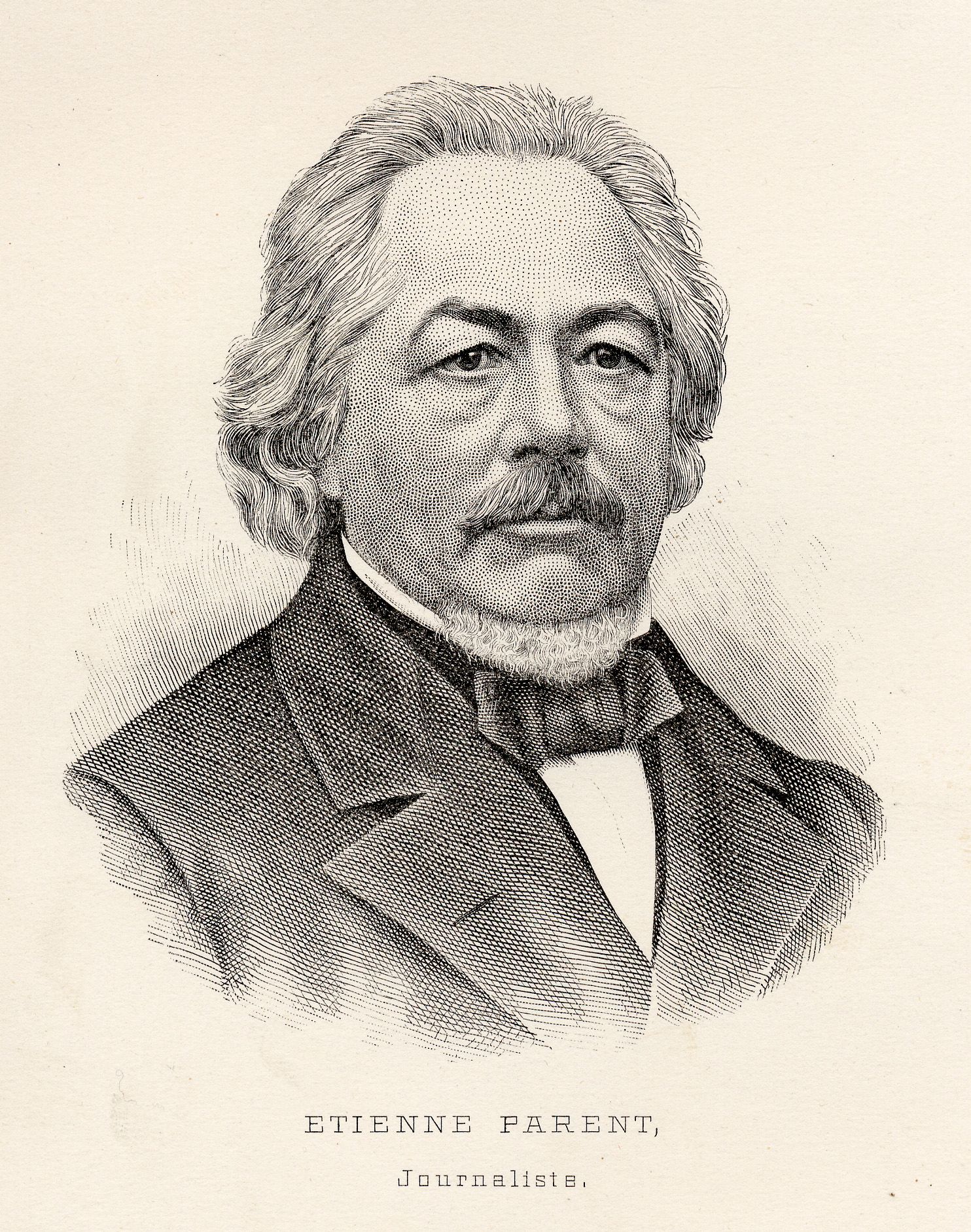 PARENT, ÉTIENNE, journaliste, avocat, député, fonctionnaire, essayiste, né dans la paroisse de Notre-Dame de la Nativité, Bas-Canada, le 2 mai 1802, du mariage d’Étienne-François Parent, cultivateur, et de Josephte Clouet, décédé à Ottawa le 22 décembre 1874.