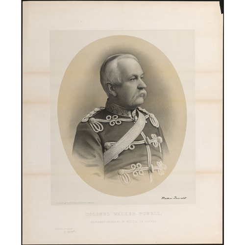 En 1861, à cause de l’affaire du Trent [V. sir Charles Hastings Doyle*], on craignit qu’une guerre n’éclate entre le Canada et les États-Unis. Cette menace hâta la réforme de la milice, ce qui eut un effet déterminant sur la carrière de Powell. Dès 1862, le procureur général du Haut-Canada, John Alexander Macdonald*, proposait un plan fondé sur l’entraînement obligatoire ; cependant, des renforts britanniques avaient déjà débarqué au pays et la crise s’était résorbée. Pour de multiples raisons, dont la colère des officiers de milice, la réforme n’eut pas lieu, le gouvernement tomba et les réformistes de John Sandfield Macdonald* prirent le pouvoir. Powell, qui avait perdu son siège en 1861 et dont les affaires personnelles étaient peut-être en fort mauvais état, obtint le poste d’adjudant général adjoint du Haut-Canada le 19 août 1862. En 1868, après la Confédération, le ministre de la Milice du nouveau dominion, sir George-Étienne Cartier*, passant l’éponge sur son passé politique, le promut en faisant de lui le seul adjudant général adjoint, avec un salaire de 2 800 $. Cinq ans plus tard, quand l’adjudant général, le colonel Patrick Robertson-Ross*, démissionna, Powell fut promu colonel et prit sa place. En 1875, lorsqu’un officier britannique, le major-général Edward Selby Smyth, fut placé au commandement de la milice, Powell, son subordonné canadien, fut confirmé dans la fonction d’adjudant général, et son salaire fut porté à 3 200 $.