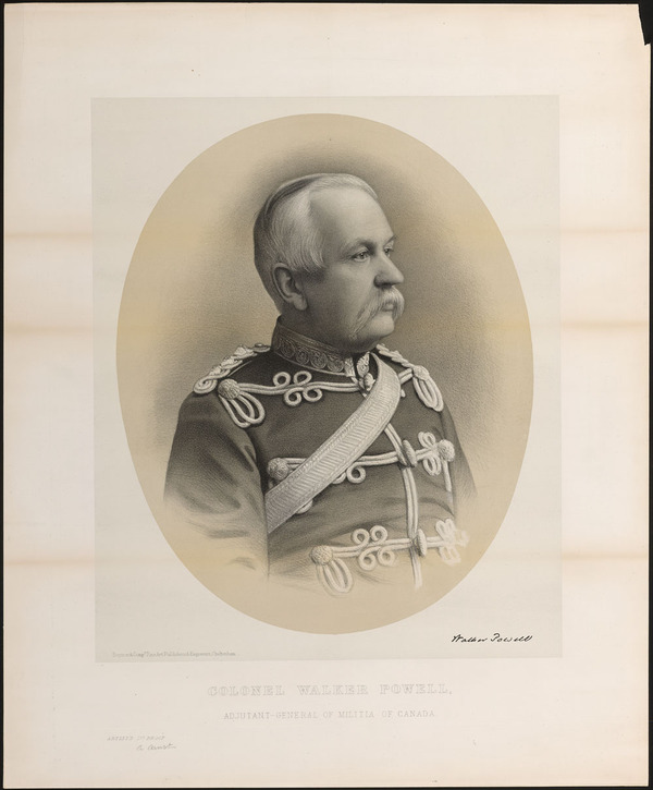 Pendant l’expédition à la Rivière-Rouge en 1870, puis en l’absence de son supérieur britannique, Frederick Dobson Middleton*, qui fut en service actif durant la campagne des Territoires du Nord-Ouest en 1885, Powell porta l’énorme fardeau administratif qui consistait à maintenir une armée de miliciens sur le terrain sans augmenter son équipe, très peu nombreuse. Middleton recommanda que le titre de compagnon de l’ordre de Saint-Michel et Saint-Georges lui soit conféré, mais l’idée de décerner des honneurs fut abandonnée lorsque sir Adolphe-Philippe Caron*, le ministre de la Milice, conclut qu’aucune liste ne pourrait contenir tous ceux qui espéraient une reconnaissance. Une mission officielle à Hawaï en 1887, fut la seule récompense que reçut Powell.