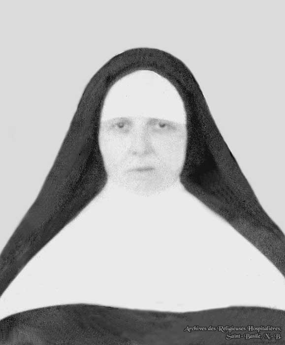 Après avoir exercé les professions d’infirmière et de pharmacienne dans cet établissement, sœur Maillet se joint à un groupe de six religieuses hospitalières appelées à prendre en charge le couvent de Saint-Basile, dans la région du Madawaska, au Nouveau-Brunswick, et à y ouvrir un hôpital. Elles doivent y remplacer les Sisters of Charity of Saint John [V. Honoria Conway*], qui, subissant le contrecoup du Common Schools Act adopté en 1871 [V. George Edwin King*], ont été contraintes d’abandonner leur œuvre. Le 11 octobre 1873, à l’âge de 26 ans, sœur Maillet arrive à Saint-Basile. Le petit couvent, qui fait aussi office d’école, d’orphelinat et d’hôpital (que les sœurs nomment Hôtel-Dieu Saint-Joseph), est situé dans une vieille maison d’un étage. Bien que l’installation officielle et canonique des religieuses hospitalières, présidée par l’évêque de Chatham, Mgr James Rogers*, ait lieu le 10 novembre, les fondatrices reçoivent leur premier malade le 5 novembre. La population locale semble ressentir de la réticence envers ces femmes, dont elle se méfie et qu’elle craint de devoir soutenir financièrement. Les religieuses manquent de tout, notamment de nourriture et de médicaments. Pharmacienne de l’hôpital, sœur Maillet doit faire preuve de créativité pour traiter ses patients. Dans son journal intitulé le « Commencement de notre fondation », elle raconte que, pour soigner les malades, « n’ayant pas de remèdes[, elle ne pouvait] que leur appliquer de l’huile de N. D. de Pitié ». Après la mort, en février 1874, de mère Louise-Virginie Davignon, supérieure du petit groupe, sœur Maillet assume de plus en plus de responsabilités. Enfin officiellement nommée supérieure locale en 1880, à l’âge de 33 ans, elle reste en poste presque continuellement jusqu’en 1919 (elle remplit en fait huit mandats de trois ans). Sa santé fléchissant, elle s’installe ensuite à l’infirmerie, où elle se consacre au soin des vieillards et des garçons malades, et à l’enseignement religieux. Elle accomplit ces tâches jusqu’à ce que, en 1926, son état exige son retrait.