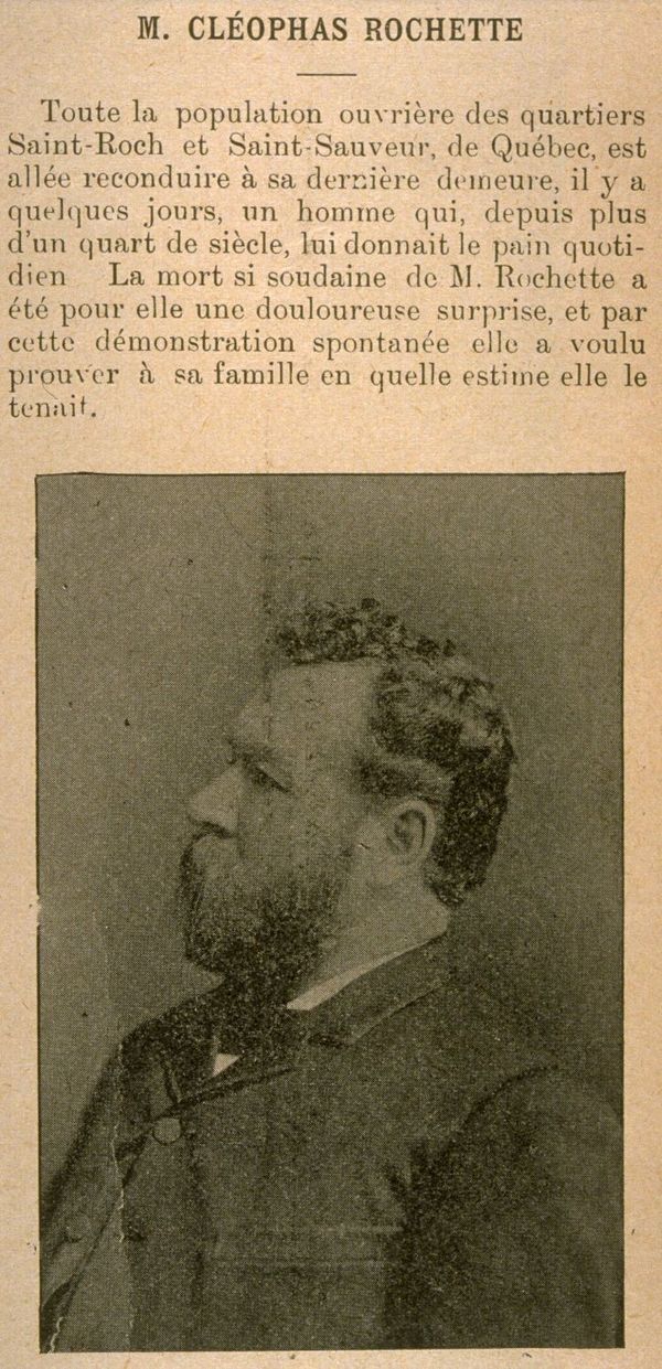 Vers l’âge de 20 ans, Cléophas Rochette vient s’établir à Québec. Tout comme ses frères, Gaspard et Olivier, il s’installe rue Saint-Vallier et travaille dans le secteur de la tannerie. En 1871, la tannerie de Cléophas produit pour 25 000 $ de peaux et emploie 13 ouvriers. La valeur de cette production se compare difficilement à celle des cinq principaux tanneurs de Québec qui se chiffre à cette époque entre 41 600 $ et 64 000 $.
