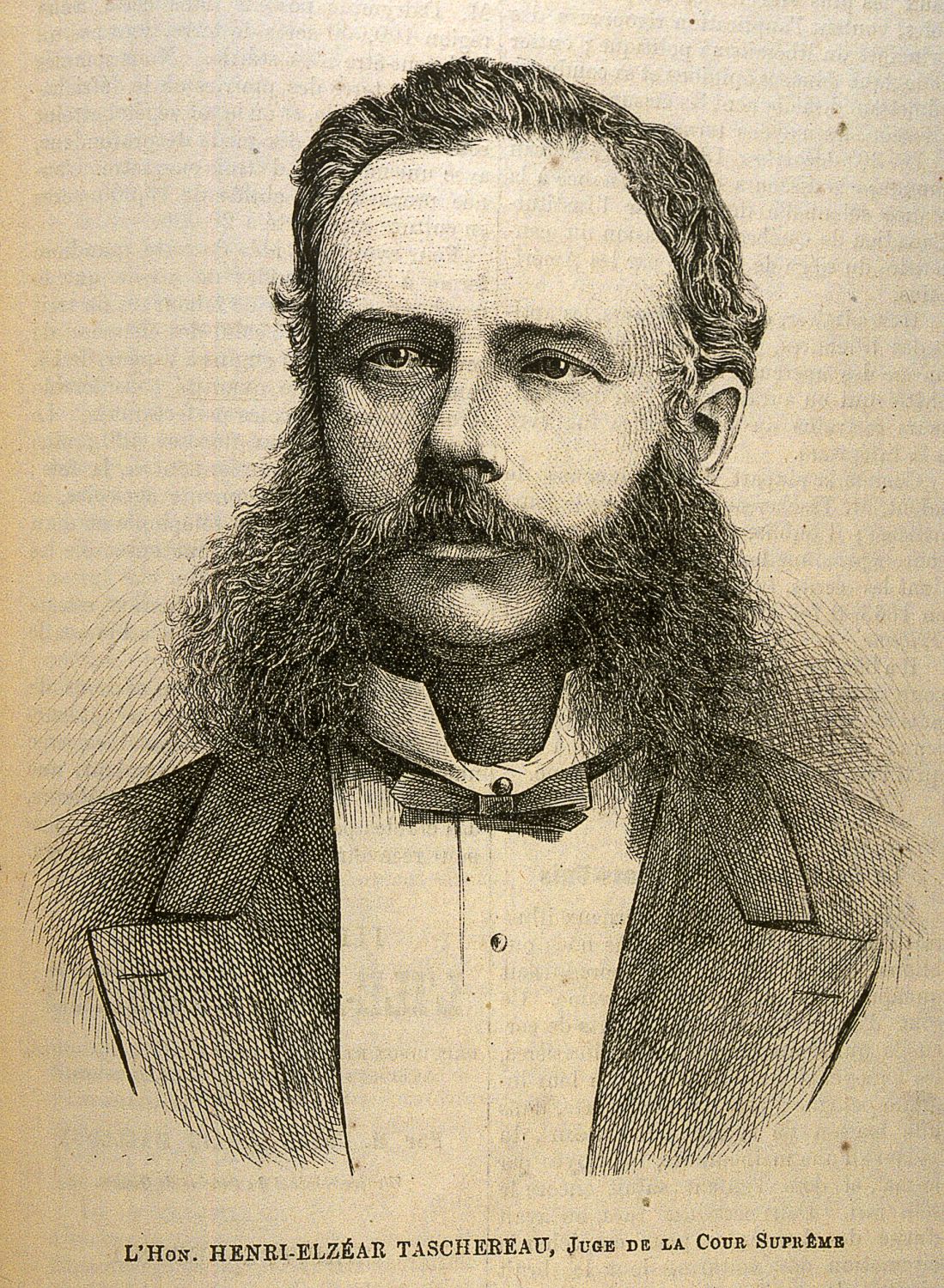 TASCHEREAU, sir HENRI-ELZÉAR (baptisé Elzéar-Henri), avocat, homme politique, juge et professeur, né le 7 octobre 1836 à Sainte-Marie-de-la-Nouvelle-Beauce (Sainte-Marie, Québec), fils aîné de Pierre-Elzéar Taschereau et d’Hémédine Dionne ; petit-fils de Thomas-Pierre-Joseph Taschereau* ; le 27 mai 1857, il épousa à Vaudreuil, Bas-Canada, Marie-Antoinette Harwood, fille de Robert Unwin Harwood*, et ils eurent sept enfants, puis le 22 mars 1897, à Ottawa, Marie-Louise Panet, et de ce second mariage naquirent trois enfants ; décédé dans cette ville le 14 avril 1911.