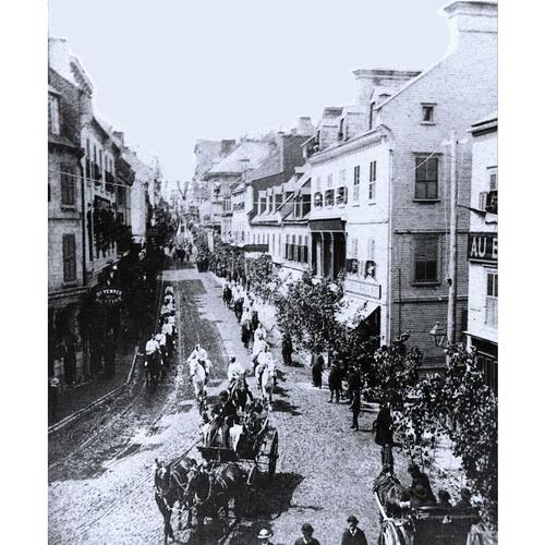 Le deuxième temps de la pratique occupe les années 1870. C’est l’époque de la grande production pour Vallée, suivie généreusement par la presse locale. Après son mariage, il s’est installé avec sa femme rue Saint-Jean. Les Vallée passeront leur vie à différents numéros de cette artère, dont la majeure partie du 39 au 43, intégrant dans leur propriété le magasin du sculpteur Louis Jobin* en 1882. Plusieurs membres de l’élite viennent se faire photographier et le maître mène une rude concurrence aux Livernois, ses voisins. Vers 1878, il publie Catalogue of photographic views of Quebec and vicinities, qui contient près de 200 titres de vues de la capitale historique qu’il a réalisées ainsi que ceux d’une soixantaine de paysages maritimes de La Malbaie, du Saguenay, de Tadoussac, de Cacouna et de nombreux villages à l’est de Québec.
