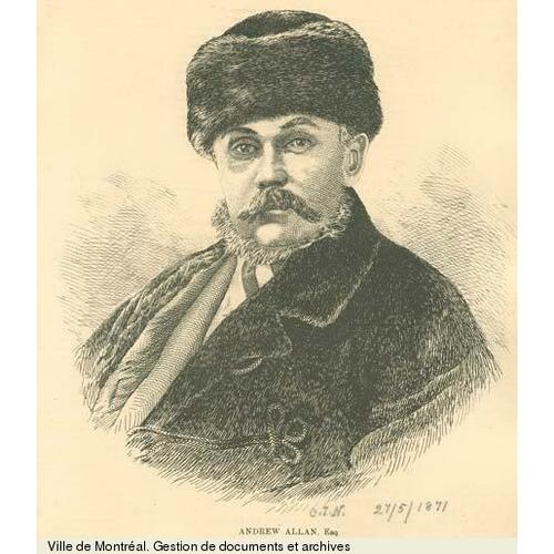ALLAN, ANDREW, shipowner and capitalist; b. 1 Dec. 1822 in Saltcoats, Scotland, fourth of five sons of Alexander Allan and Jean Crawford; m. 8 Sept. 1848, in Montreal, Isabella Ann Smith, daughter of John Smith, a prominent Montreal dry-goods merchant, and sister to the wife of his elder brother Hugh*; they had six sons and two daughters; d. 27 June 1901 in Montreal.