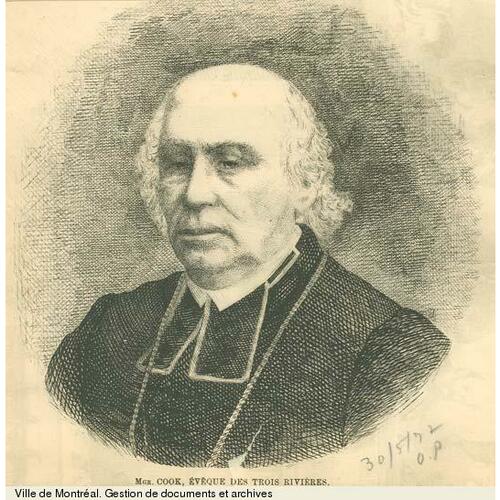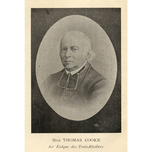 Thomas Cooke was appointed first bishop of the diocese of Trois-Rivières on 8 June 1852 and consecrated on 18 October. The diocese extended from Maskinongé to Sainte-Anne-de-la-Pérade, from Yamaska to Saint-Pierre-les-Becquets, and from the upper Saint-Maurice to the American border. The new office changed him little, for he remained above all a parish priest and pastor. Unfailingly courteous with laymen and gentle with children, Bishop Cooke became increasingly demanding of himself and others. An impetuous Irishman, he readily lost his temper, and blasted offenders without compromise or equivocation, but his anger almost always ended in a resounding laugh which disconcerted those who did not know him intimately; he was a witty and skilful talker, and his conversation was enlivened by clever and piquant rejoinders which sometimes went beyond acceptable limits. His charity was proverbial at Trois-Rivières, where he always showed himself a lover of order and justice. Bishop Cooke stayed out of ideological quarrels, for, according to a contemporary, “he understood little about the questions that so engrossed the minds of some.” Thus in 1863, when he was obliged to take a stand concerning the creation of a Catholic university at Montreal, he wrote to the archbishop of Quebec: “I shall vote as Your Excellency does, if you are against it. You will please be good enough to inform me, indeed to send me a résumé of the reasons that I can use in my reply.” In 1867 he left it to his coadjutor, Bishop Louis-François Laflèche*, to draw up a text which was strongly in favour of confederation, and he agreed to sign it although he considered it “too political.”