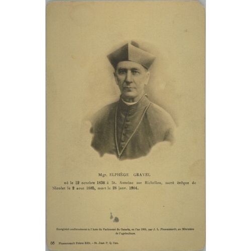 GRAVEL, ELPHÈGE (baptized Alphée), teacher, Roman Catholic priest, and bishop; b. 12 Oct. 1838 in Saint-Antoine-sur-Richelieu, Lower Canada, fifth of the 12 children of Nicolas Gravel, a farmer, and his second wife, Julie Boiteau; d. 28 Jan. 1904 in Nicolet, Que.