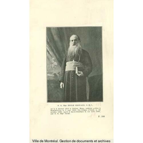 GROUARD, ÉMILE (named at birth Émile-Jean-Marie), Roman Catholic priest, Oblate of Mary Immaculate, missionary, bishop, publisher, artist, and author; b. 1 Feb. 1840 in Brûlon, France, son of André Grouard, a gendarme, and Anne Ménard; d. 7 March 1931 in Grouard, Alta.
