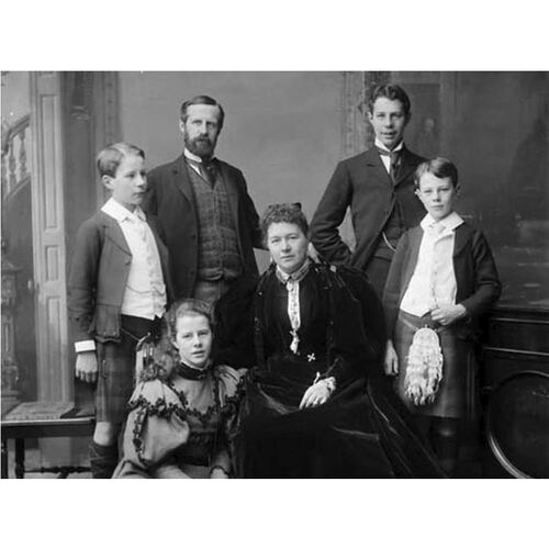 In 1890 another lengthy trip overseas brought the Aberdeens and their four children to Canada, where, after stops in Quebec City, Montreal, and Kingston, they lived happily for a time at Highfield House in Hamilton. The couple then crossed the country on the Canadian Pacific Railway, visiting settlers, particularly recent Scottish immigrants, as well as indigenous communities. A return journey to North America in 1891 allowed them to view the ranch in the Kelowna area of British Columbia’s Okanagan valley that they had bought unseen the previous year and named Guisachan after Lady Aberdeen’s Highland home, and to purchase a second, much larger property, Coldstream, near Vernon [see Charles Frederick Houghton*]. Her brother Coutts Marjoribanks, who had been unsuccessful as a cattle rancher in North Dakota, was persuaded to manage Guisachan and then Coldstream before he acquired his own land. The ranches were intended to produce profits in cattle, fruit orchards, and the sale of land to “gentlemen emigrants,” and a jam factory was erected in Vernon. But Lord Aberdeen would prove a poor businessman, and the properties were sold at great loss early in the 20th century. They did, however, replenish the private man and foster his enduring affection for the dominion. In the Vernon area Lord Aberdeen was long remembered as a pioneer of the fruit-growing industry, a keen horseman, and a friendly, albeit rather shy, neighbour.
