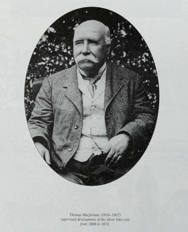 Three years later Macfarlane undertook a series of explorations on behalf of the Montreal Mining Company. They resulted, in July 1868, in his discovery of Canada’s first major (and most improbably situated) silver deposit, on a tiny rock in Lake Superior, which he named Silver Islet. He assayed ore for the mine’s new, American owners (the Silver Mining Company of Silver Islet), used his European contacts to recruit Norwegian miners, and managed the company’s smelting and refining operations at Wyandotte, Mich., at different times in the 1870s. These connections with the mine were sporadic, however, and were interspersed with other ventures.