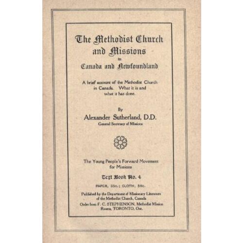 Alexander Sutherland’s personal papers in UCC-C, 3182, include many of his sermons dated between 1883 and 1910, as well as his general correspondence and his private letterbooks. His official correspondence as general secretary of the Methodist Missionary Soc. is also found in the UCC-C, at 14/2/2 (copy-books of outgoing Alexander Sutherland corr.) and 14/2/4 (incoming Sutherland corr.). For papers relating to the Saskatchewan Land and Homestead Company, see AO, F 1006, no.29.