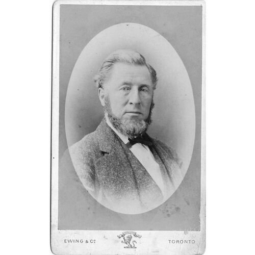 TODD, JACOB HUNTER, businessman and politician; b. 17 March 1827 near Brampton, Upper Canada, son of John Todd and Isabella Hunter; m. first 25 Jan. 1854, in Brampton, Anne Fox (d. 1866), and they had two sons and two daughters, of whom a son and a daughter survived childhood; m. there secondly 24 March 1873 Rosanna Wigley, and they had five sons, of whom three died young, and two daughters; d. 10 Aug. 1899 in Victoria, B.C.
