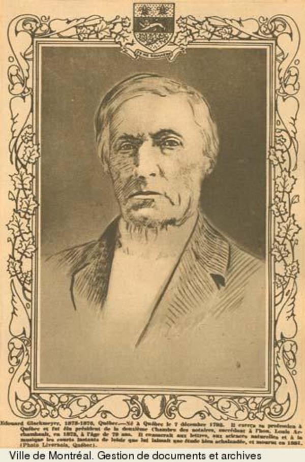 GLACKMEYER, LOUIS-ÉDOUARD, notaire et conseiller municipal, né à Québec le 7 décembre 1793, fils de Frédéric-Henri Glackmeyer*, professeur de musique, et de Marie-Anne O’Neil, décédé à Québec le 9 février 1881.