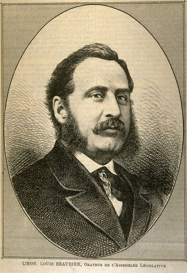 BEAUBIEN, LOUIS (baptisé Louis-Joseph-Benjamin), journaliste, homme politique, propriétaire terrien et homme d’affaires, né le 27 juillet 1837 à Montréal, fils de Pierre Beaubien*, médecin et homme politique, et de Marie-Justine Casgrain ; le 31 mai 1864, il épousa à Québec Suzanne Lauretta Stuart, fille d’Andrew Stuart*, avocat et futur juge en chef de la Cour supérieure de la province de Québec, et de Charlotte-Elmire Aubert de Gaspé, et le couple eut quatre fils et quatre filles ; décédé le 19 juillet 1915 à Outremont, Québec.