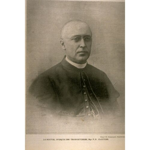 Arch. des ursulines de Trois-Rivières, Québec, MTR, 3, 2, 3, 3, 1, 64 (Monseigneur F. X. Cloutier succède à Monseigneur L.-F. Laflèche).— Arch. du séminaire Saint-Joseph de Trois-Rivières, FN-0190-3-01-5.— BAnQ-MCQ, CE401-S3, 2 nov. 1848.— FD, Immaculée-Conception, cathédrale l’Assomption (Trois-Rivières), 22 sept. 1934.— L’Action sociale (Québec), 22 sept. 1909.— Le Bien public (Trois-Rivières), 20 sept. 1934.— Le Devoir, 19, 22 sept. 1934.— Le Monde illustré (Montréal), 1er juill. 1899.— [Paul Arsenault et André Dumont], Une mission sur place : hier et aujourd’hui, le sanctuaire Notre-Dame du Cap ([Cap-de-la-Madeleine [Trois-Rivières], 1979]).— Émile Cloutier, le Problème patronal et ouvrier : cours donnés aux Semaines sociales de Québec, d’Ottawa et des Trois-Rivières (s.l., 1927).— Conseil central des syndicats ouvriers nationaux catholiques, Notes historiques sur le syndicalisme catholique à Trois-Rivières, à l’occasion des Semaines sociales du Canada […] (Trois-Rivières, 1960).— [Conseil diocésain d’action sociale catholique des Trois-Rivières], Premier Congrès d’action sociale du diocèse des Trois-Rivières, 1912 : compte rendu (Trois-Rivières, [1912 ?]).— René Hardy, « l’Engagement social de l’Église », dans Histoire de la Mauricie, René Hardy et al., édit. (Sainte-Foy [Québec], 2004), 706–731.— Histoire du catholicisme québécois, sous la dir. de Nive Voisine (2 tomes en 4 vol. parus, Montréal, 1984– ), tome 3, vol. 1 (Jean Hamelin et Nicole Gagnon, le xxe siècle (1898–1940), 1984).— [Arthur Joyal], Mgr François-Xavier Cloutier : prophète de Notre-Dame du Cap (Trois-Rivières, [1940 ?]).— Mandements, lettres pastorales et circulaires des évêques de Trois-Rivières (34 vol., Trois-Rivières, 1852–1999), 7–12.— J.-Y. Marchand, « les Mouvements d’action catholique et les évêques de Trois-Rivières » (mémoire de m.a., univ. du Québec à Trois-Rivières, 1973).— Jean Panneton, le Diocèse de Trois-Rivières, 1852–2002 : 150 ans d’espérance (Sillery [Québec], 2002).— J. [G.] Shaw, Notre-Dame du Cap, José et Jeanne Leroux, trad. (Cap-de-la-Madeleine, 1954).— E[ugenie] Talusier, Autour du clocher natal : notes historiques sur la paroisse de Saint-Prosper, comté de Champlain (Trois-Rivières, 1909).
