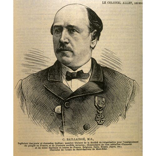 BAILLAIRGÉ, CHARLES (baptisé Charles-Philippe-Ferdinand), architecte, arpenteur, ingénieur civil et auteur, né le 29 septembre 1826 à Québec, deuxième fils de Pierre-Théophile-Ferdinand Baillairgé et de Charlotte Janvrin Horsley, et frère de George-Frédéric-Théophile Baillairgé ; le 11 juin 1849, il épousa à Beauport, Bas-Canada, Euphémie Duval, et ils eurent 11 enfants, dont 5 atteignirent l’âge adulte, puis le 21 avril 1879, à Québec, Annie Wilson, et de ce second mariage naquirent 9 enfants ; décédé dans cette ville le 10 mai 1906.