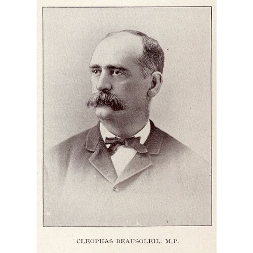 BEAUSOLEIL, CLÉOPHAS, journaliste, propriétaire de journaux, fonctionnaire, avocat et homme politique, né le 19 juin 1845 à Saint-Félix-de-Valois, Bas-Canada, fils de Joseph Silvestre, dit Beausoleil, cultivateur, et de Rosalie Charron, dit Ducharme ; le 29 janvier 1868, il épousa à Québec Henriette Lapointe, fille de feu François Audet, dit Lapointe, et de Rebecca Blakiston, et ils eurent deux filles et trois fils ; décédé le 4 octobre 1904 à Saint-Gabriel-de-Brandon, Québec.