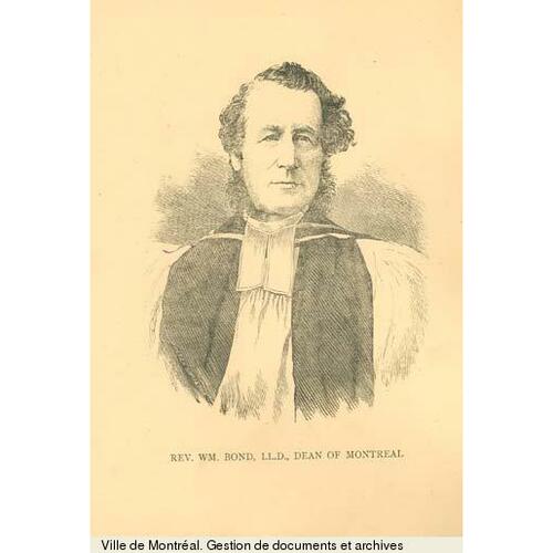 De Lachine, Bond passa en 1848 à l’église St George de Montréal en qualité de ministre adjoint. En même temps, il remplaça Willoughby, décédé l’année précédente, à la surintendance canadienne de la Newfoundland School Society. Comme le rector de St George, le révérend William Turnbull Leach*, était aussi vice-recteur du McGill College, la plus grande partie des responsabilités paroissiales retombaient sur Bond. Il allait rester à St George jusqu’en 1878 et y réaliser une partie de son œuvre la plus durable. En 1863, il succéda à Leach à la charge de rector. La même année, on le nomma doyen rural d’Hochelaga ; en 1866, chanoine de la cathédral Christ Church de Montréal ; en 1870, aumônier personnel de l’évêque anglican de Montréal, Ashton Oxenden*, et archidiacre d’Hochelaga ; puis en 1872, doyen de Montréal. Il reçut, à titre honorifique, une maîtrise ès arts du Bishop’s College en 1854 (et par la suite un doctorat en théologie et un doctorat en droit) de même qu’un doctorat en droit du McGill College en 1870. Aumônier du 1st Prince of Wales’s Regiment of Volunteer Rifles, il l’accompagna dans les Cantons-de-l’Est en 1866 et en 1870 pendant les raids féniens. En 1898, il devint capitaine et aumônier du régiment à titre honorifique.