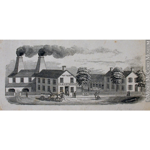 FARRAR, GEORGE WHITEFIELD (Whitfield), potier, né le 29 avril 1812 à Fairfax, Vermont, fils d’Isaac Brown Farrar et d’Alma Lawrence ; le 25 septembre 1836, à Barre, Massachusetts, il épousa Sophia Adams Winslow, et ils eurent trois fils et une fille ; décédé le 28 janvier 1881 à Iberville, Québec.