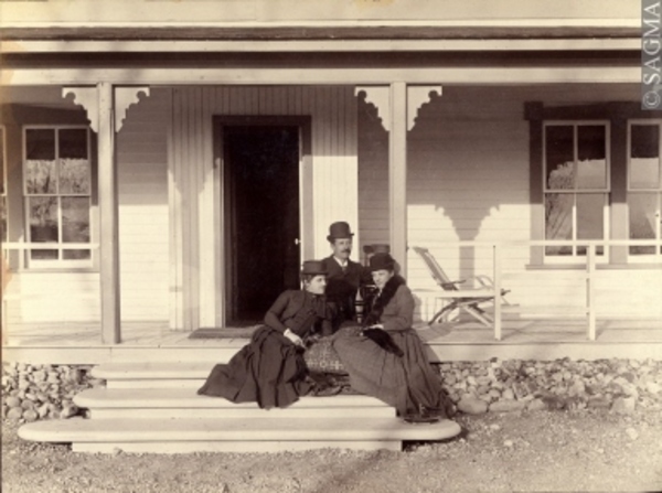 Titre original :  Elliott Galt with one of his sisters and a cousin outside
